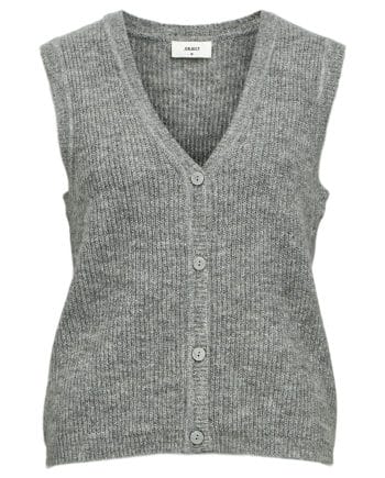 Object Diana V-Hals Strik Vest Medium Grey Melange