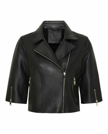 Notyz Crooped Skindjakke Sort M. Guld Detaljer