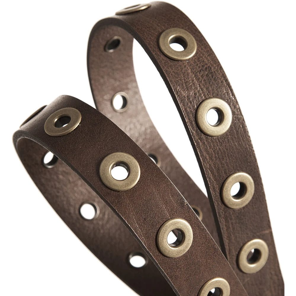 Depeche Smalt Læder Bælte M. Øjenitter Brun/Brass