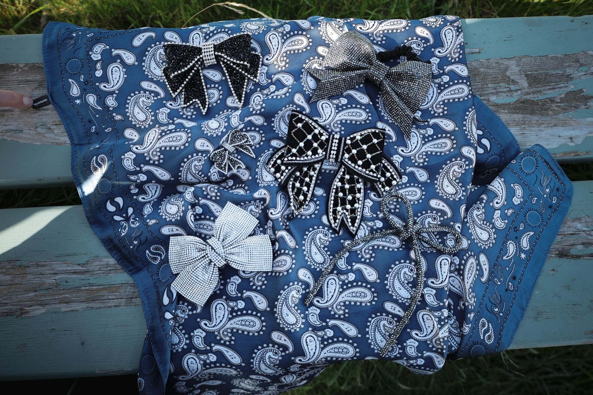 Broche formet som en sløjfe, pyntet med rhinsten