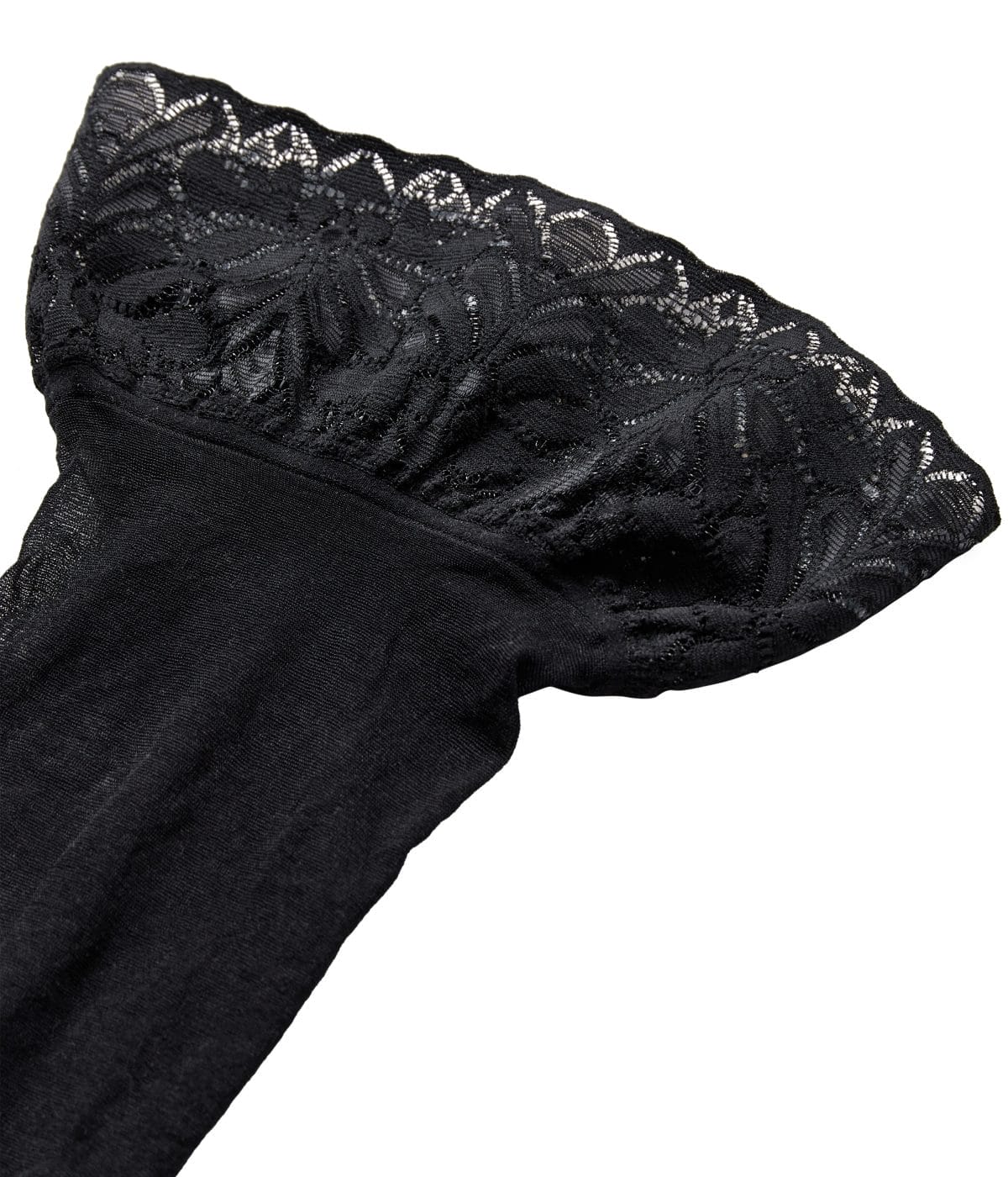 Flot og let skinnende selvsiddende strømper. Feminin blondekant med silicone for optimal pasform.