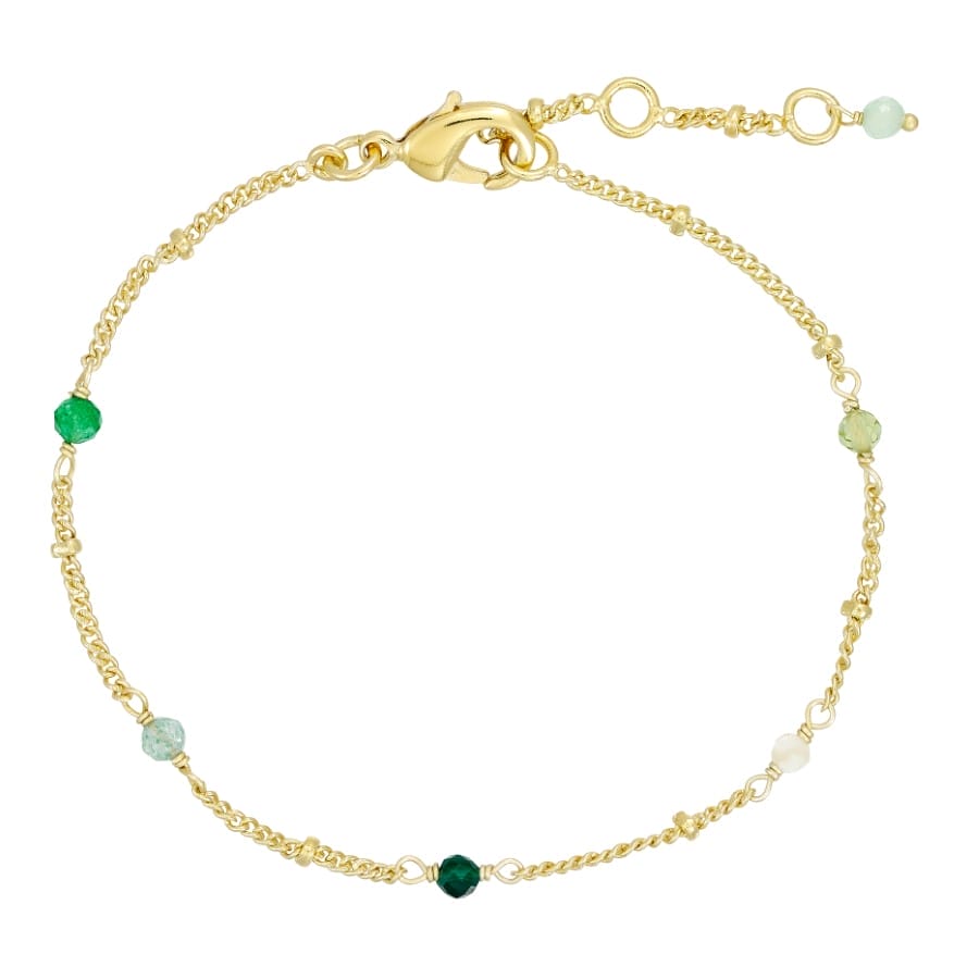 Pure By Nat Armbånd M Natursten & Perler Grøn Guldbelagt