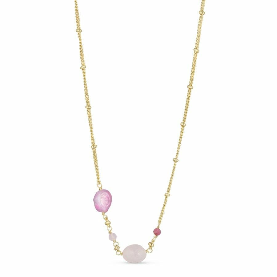 Pure By Nat Halskæde Med Perler Og Natursten – Lilla Toner Guldbelagt