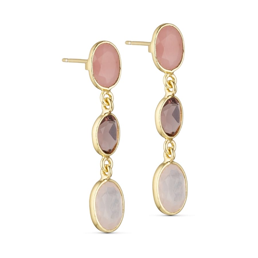 Amira ørering i guld med guava kvarts, rhodolit og rosa kvarts
