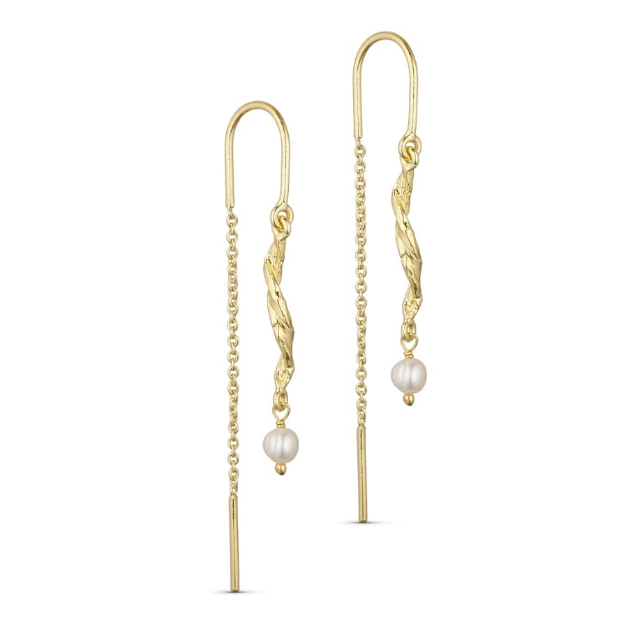 Idun øreringe i guld med kæder og ægte ferskvandsperler