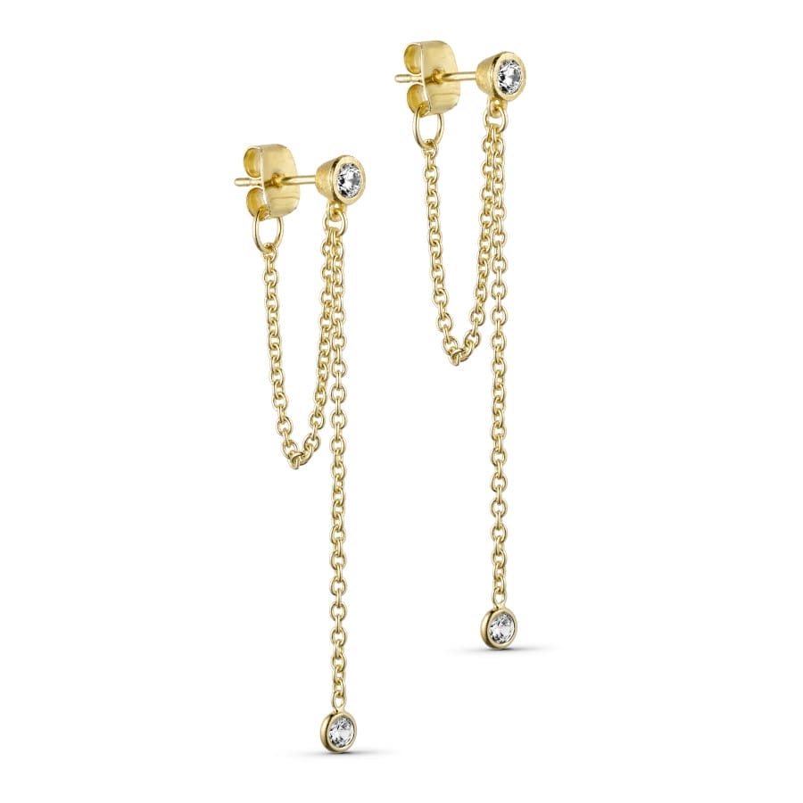 De smukke kæde øreringe består hver især af to fine zirkoner, som binder smykket sammen fra top til tå.