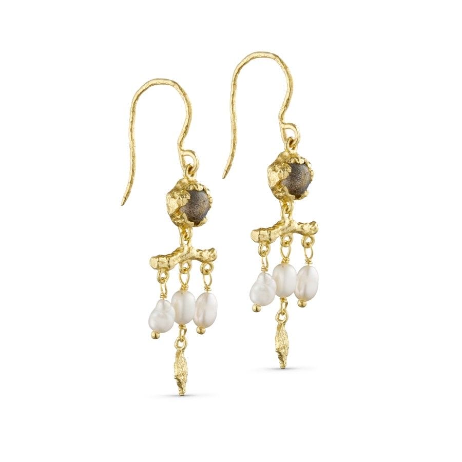 Pure By Nat Ørering Med Vedhæng Grå/ Hvid Perler Guldbelagt