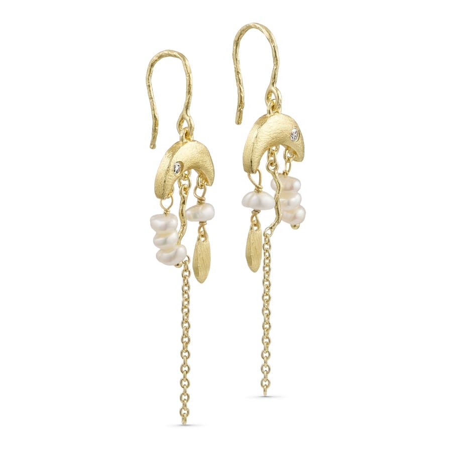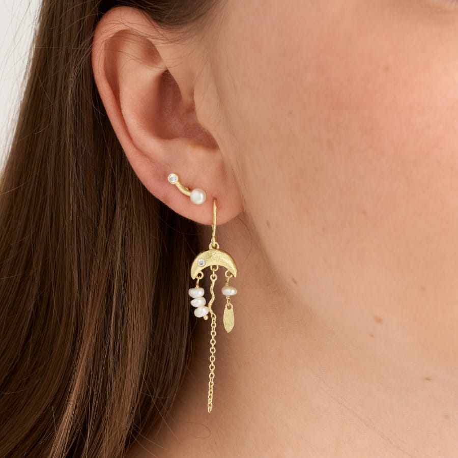 Pure By Nat Øreringe M. Måne & Perler Guldbelagt