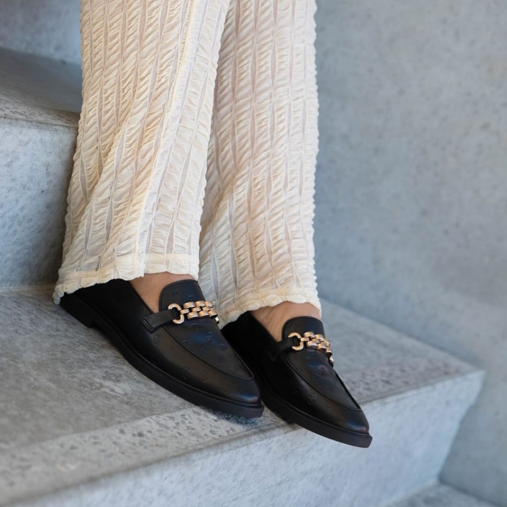 Super skønne loafers, i blødt skind med logo prægning og guld detalje. Skoene er foret med skind og har vores specielle bløde Copenhagenshoes latex indersål. Sålen er i blød og flexible TPR
