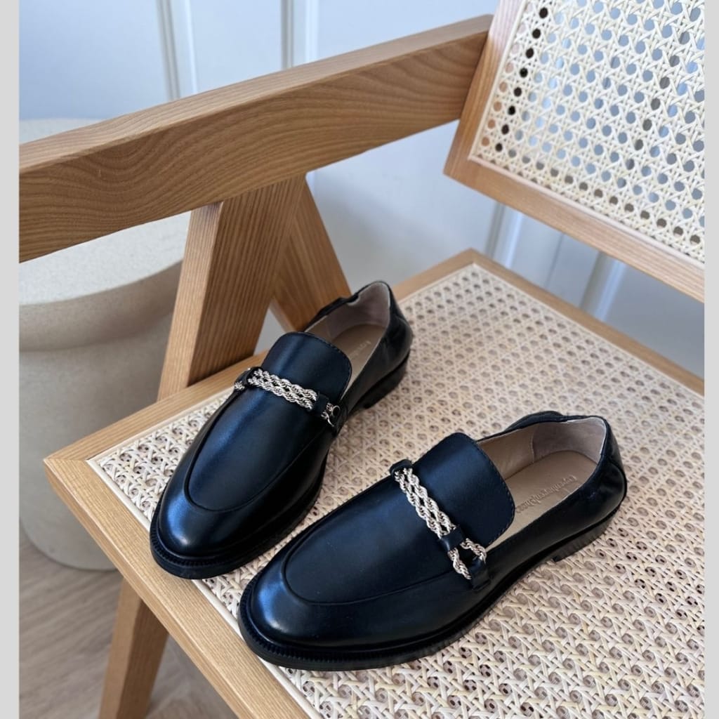 Smukke loafers i blødt kalveskind, med elastik indsats ved hælen, for god pasform. Pasformen er almindelig til rummelig. Dejlig blød og flexible sål. Skind for og dejlig blød indersål i vores specielle Copenhagenshoes latex skum. Detalje i guldmetal