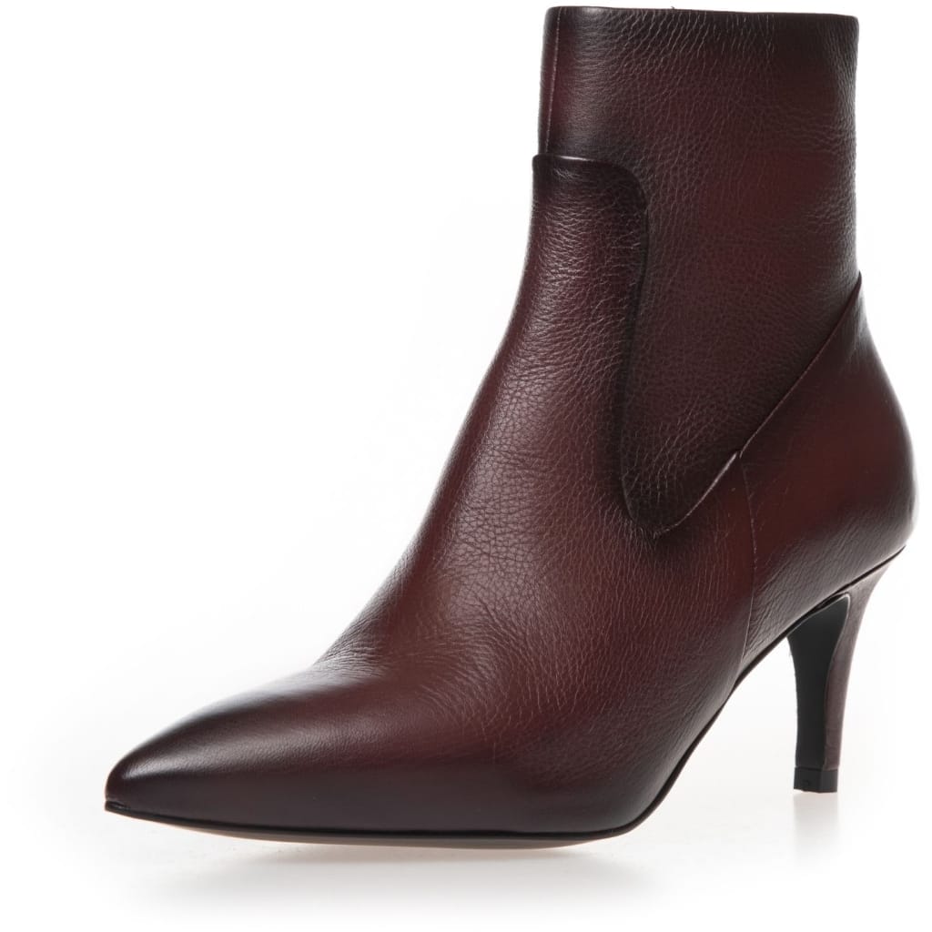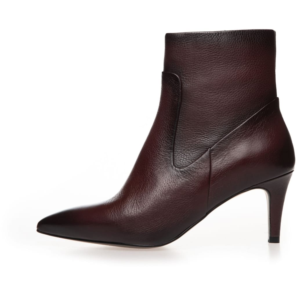 En sofistikeret ankelstøvle med en slank silhuet og elegant spids snude. Det bløde skind former sig smukt om foden og giver støvlen et eksklusivt look. Den slanke hæl og rene linjer understreger det feminine udtryk og gør modellen oplagt til både hverdag og særlige anledninger.