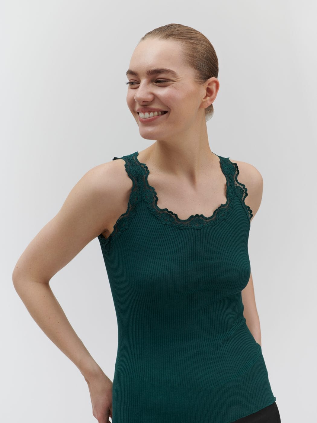 Materiale: 70% Morbærsilke 30% Bomuld 86% Polyamid 14% Elastan Vask: 30 grader skåne Krymper max 5%