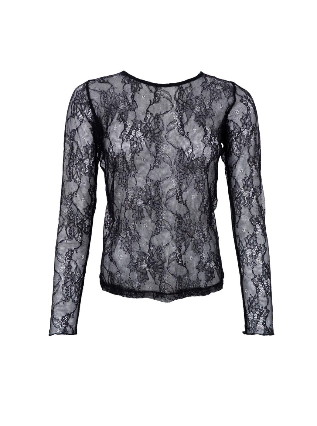 Lara blusen er en langærmet blondebluse i let og transparent kvalitet. Modellen har rund halsudskæring og en tætsiddende pasform, der giver et feminint og elegant udtryk.
