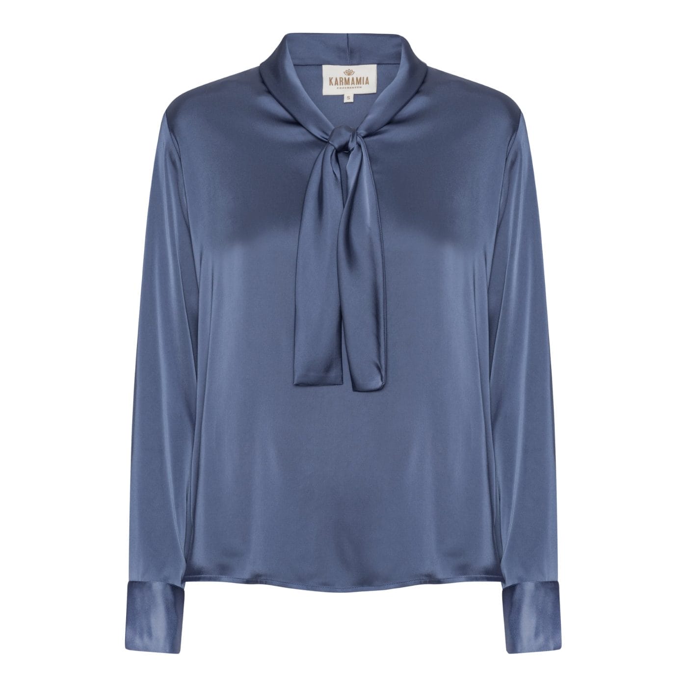 Minimalistisk bindebluse i satin med multifunktion. Kan bindes som “pussy bow”, sømandsknude eller stå åben.