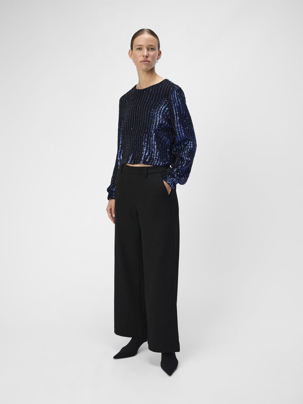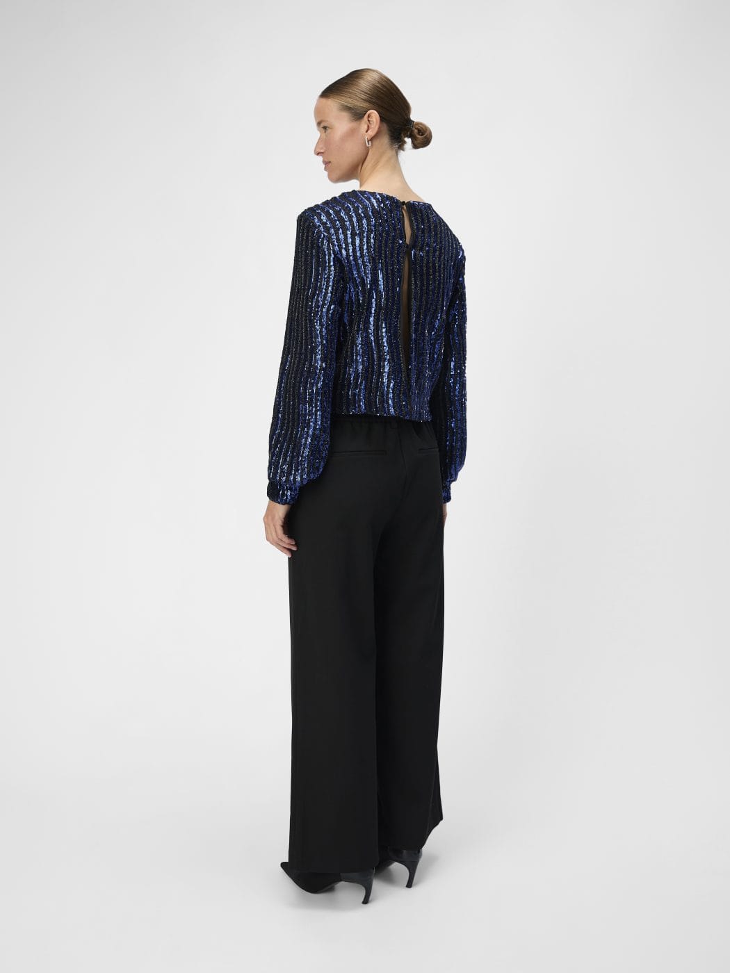 Object Dotti Bluse M. Palietter Sky Captian/Sort Mesh