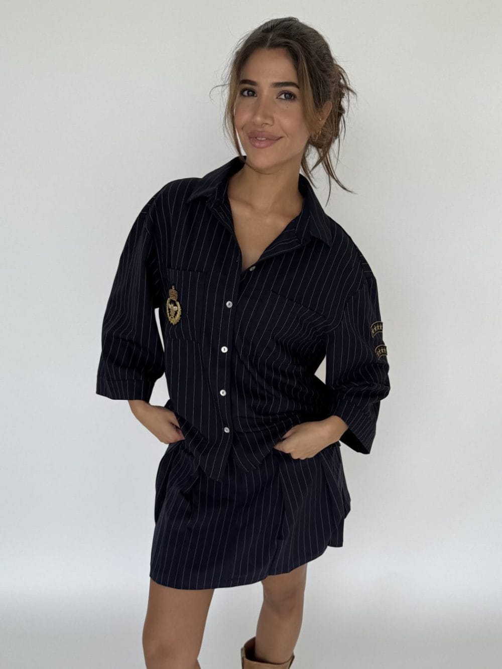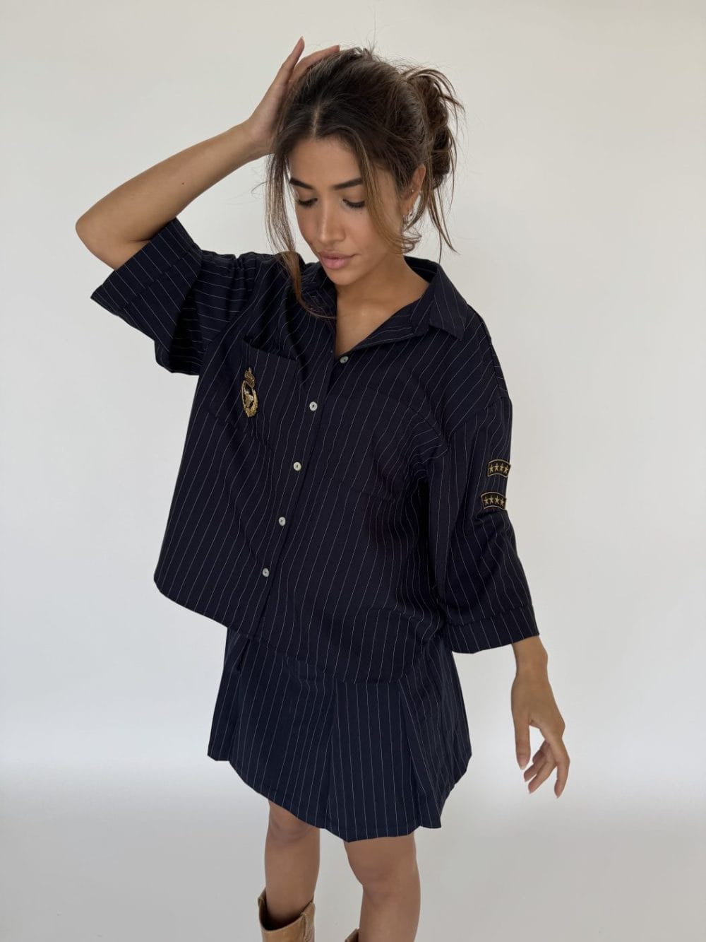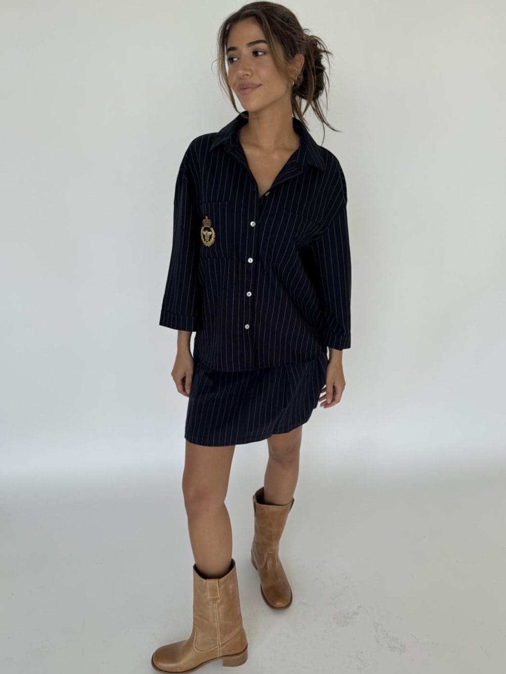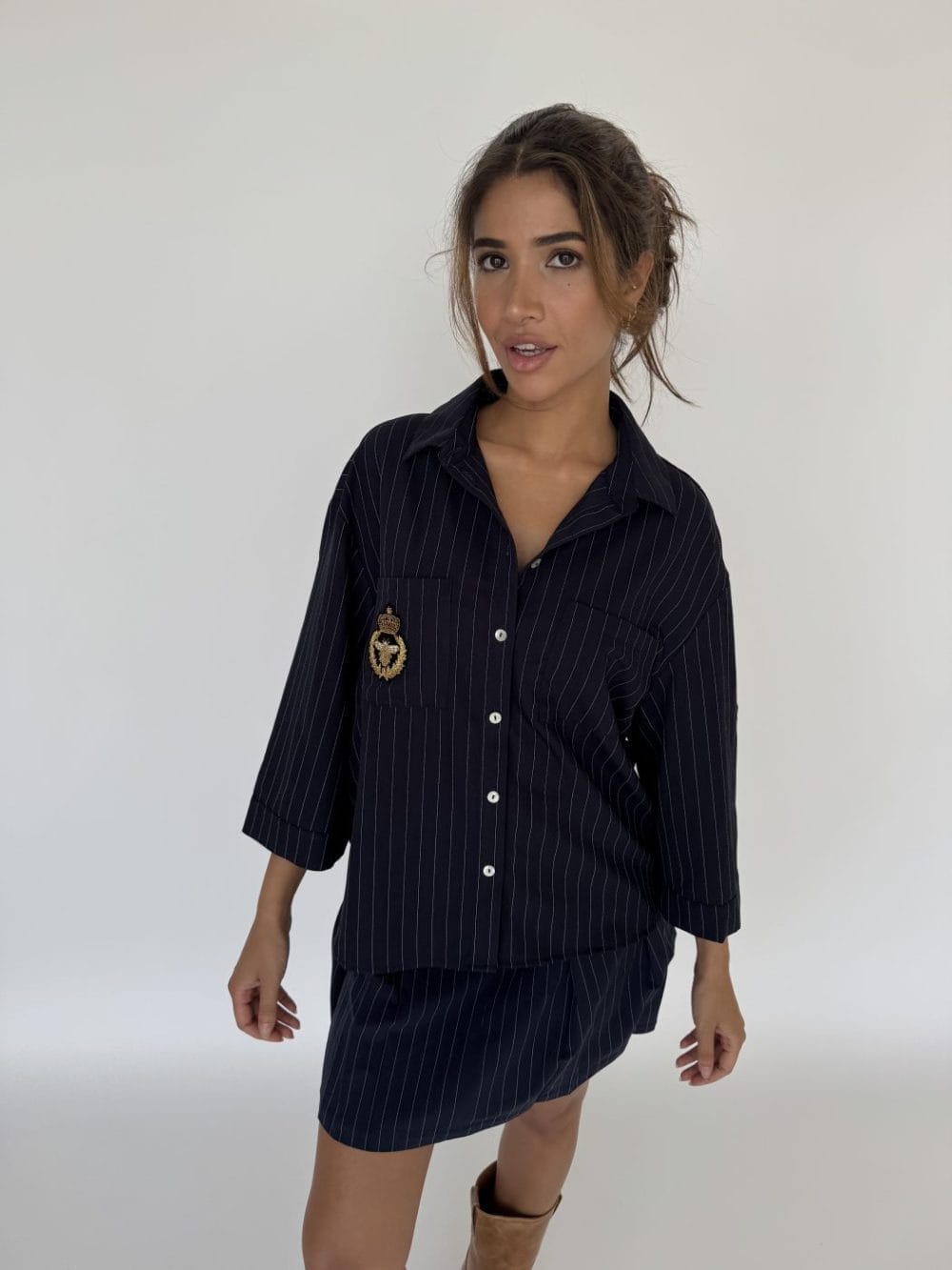 Continue Mili Pinstripe Navy Bluse Blue Stripe