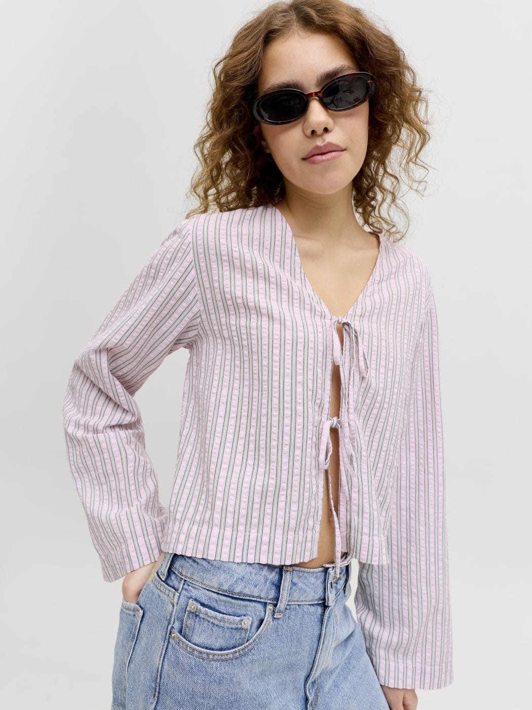 JJXX Zoe Seersucker skjorte Pink Lady Brown