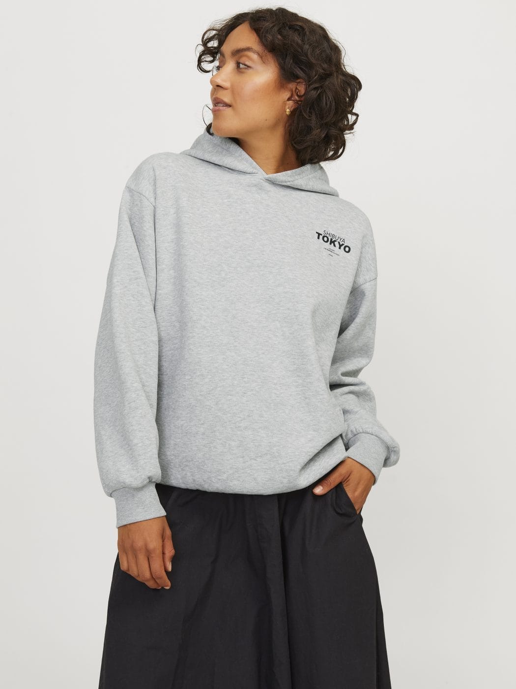JJXX Nelly Hættetrøje Light Grey Melange M. Print