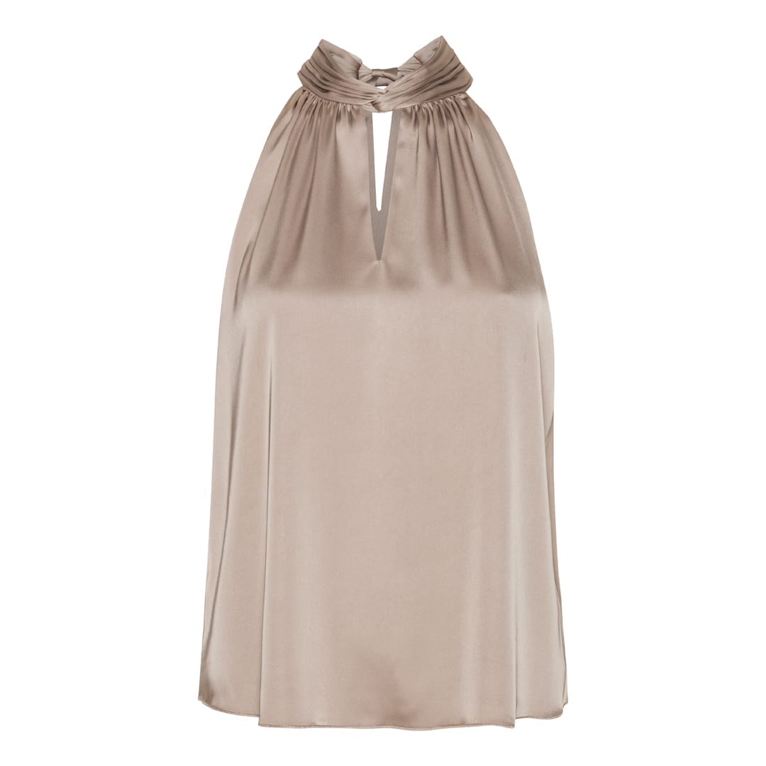 Stilfuld halter-neck top med dyb V-udskæring og smukke flæseeffekter rundt om halsen. Toppen fås i flere farver og passer godt til vores Savannah Skirt eller dine yndlingsbukser.
