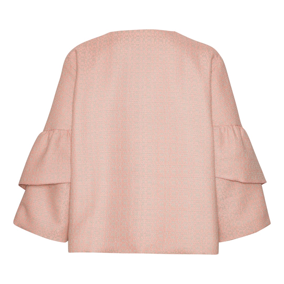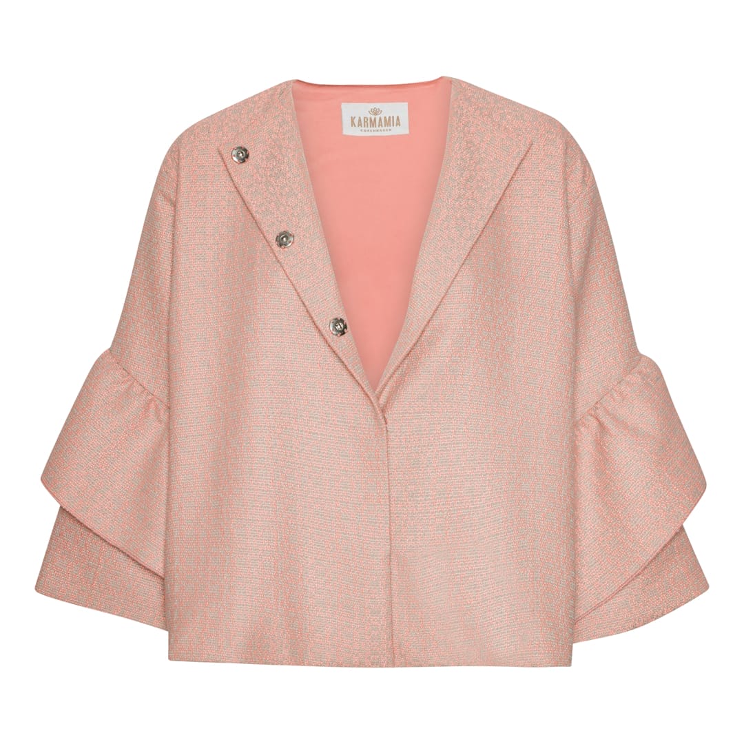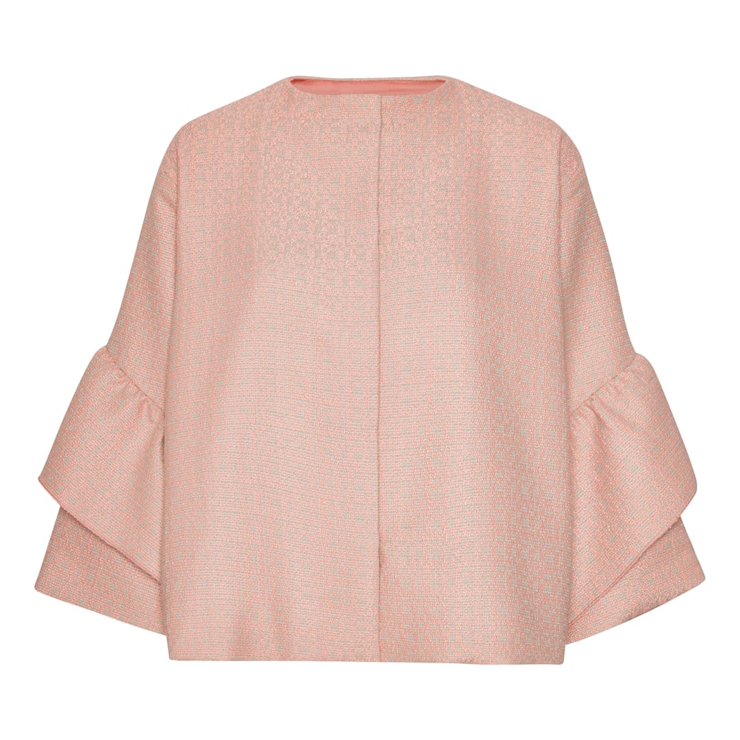 Spencer-jakken er en kort version af den klassiske Kennedy-jakke, i begrænset oplag. Knapperne ved halsudskæringen giver dig mulighed for at afsløre din yndlingsbluse under eller fastgøre og bære jakken som en løs top. Peplum-ærmer med flæser i flere lag smigrer armen og tilføjer et ekstra strejf af mode til Spencer-jakken.
