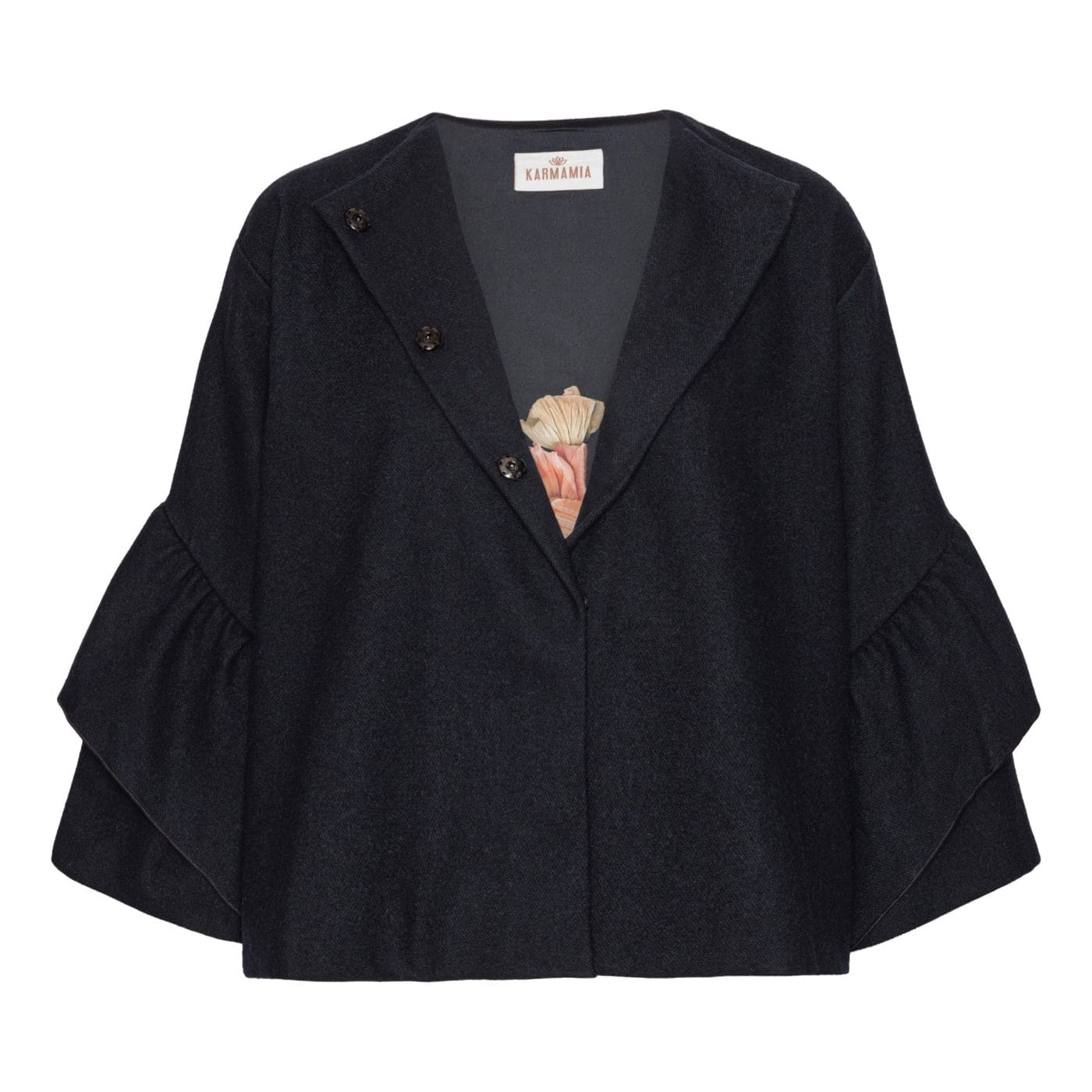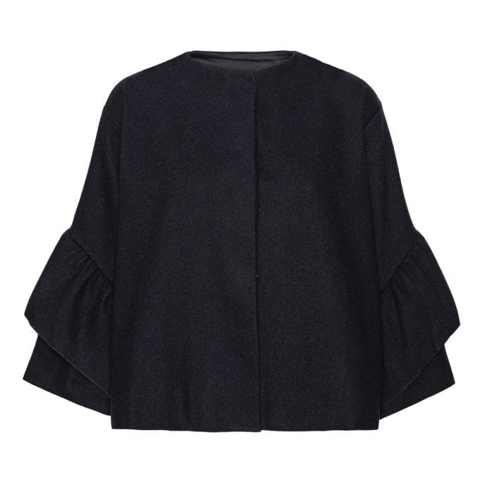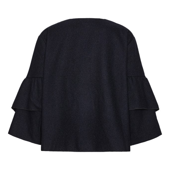 Spencer-jakken er en kort version af den klassiske Kennedy-jakke, i begrænset oplag. Knapperne ved halsudskæringen giver dig mulighed for at afsløre din yndlingsbluse under eller fastgøre og bære jakken som en løs top. Peplum-ærmer med flæser i flere lag smigrer armen og tilføjer et ekstra strejf af mode til Spencer-jakken.