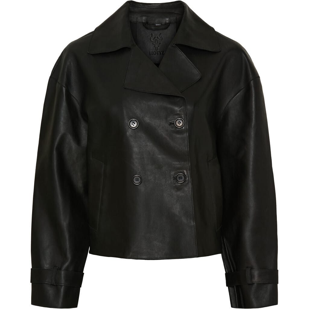 Kort trenchcoat i det blødeste lammeskind. Jakken er med åben krave og dobbeltradede knapper foran, som tilføjer et tidløst look. Detaljer med rem ved ærmeafslutningen, der tilføjer det klassiske trenchcoat touch.