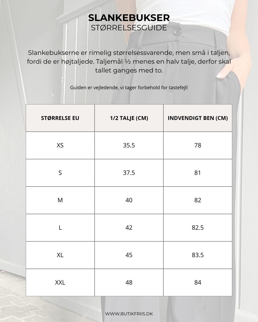 Slankebuksen er i længde 34″