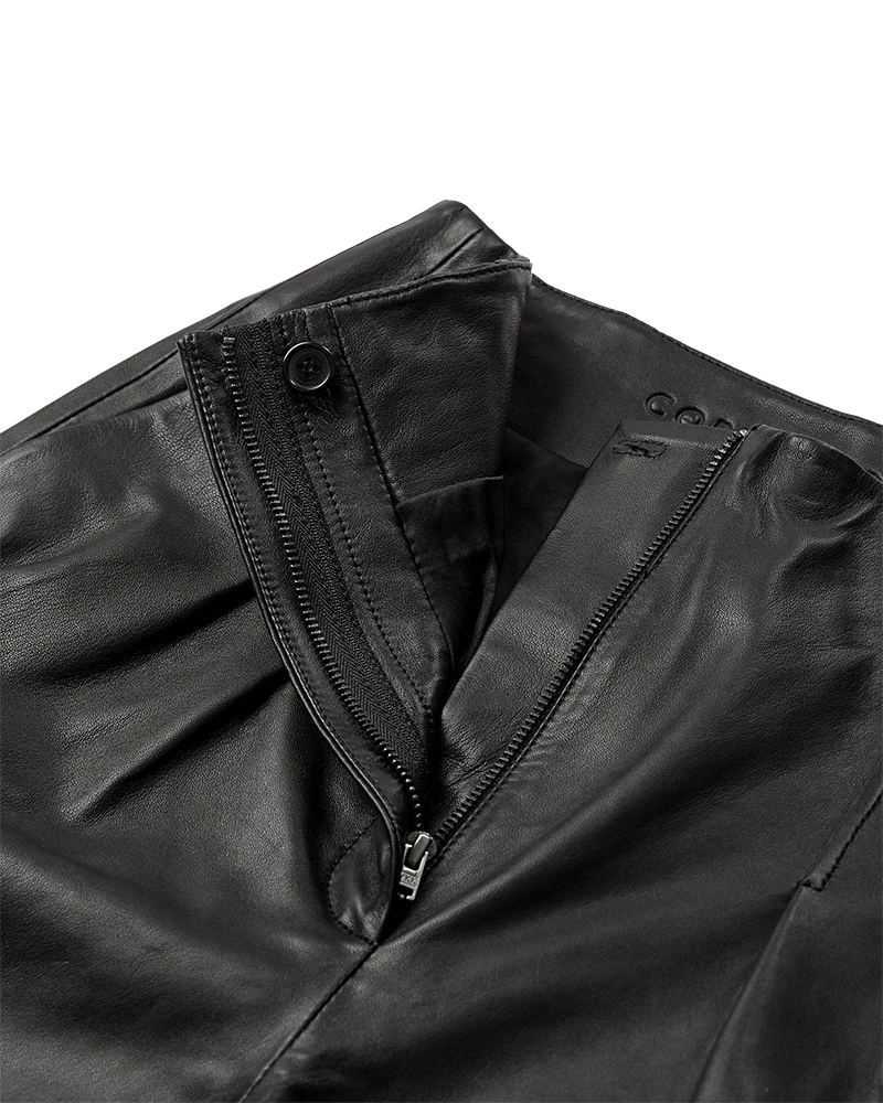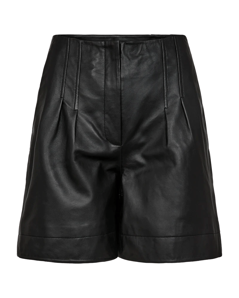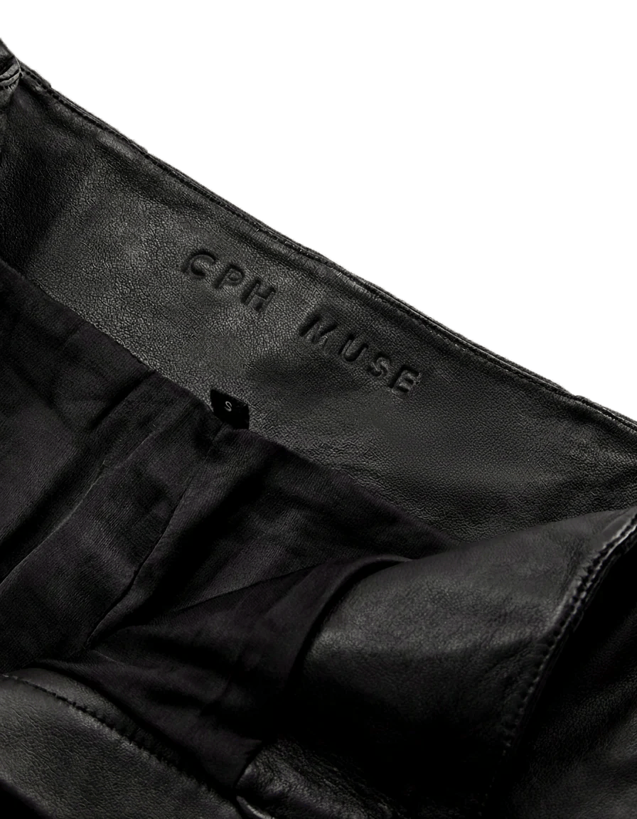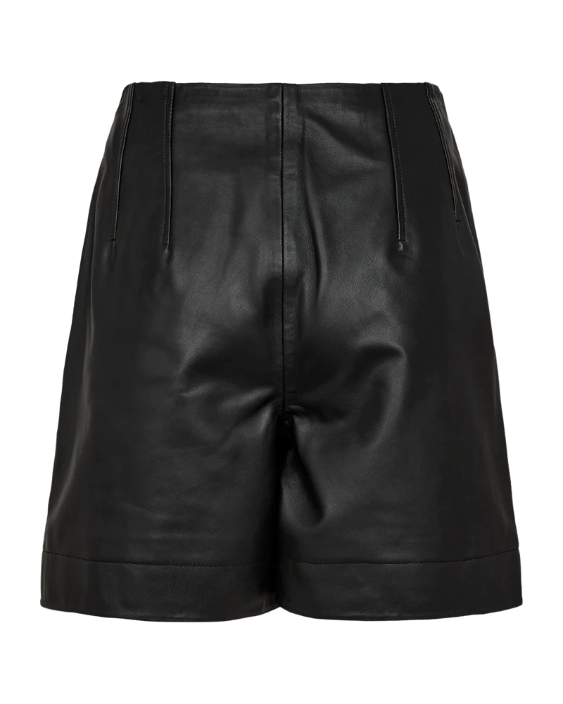 Copenhagen Muse Royal Shorts er et par shorts i en eksklusiv læderkvalitet med skjult knap- og lynlåslukning, vide ben, sidelommer samt læg på fronten.