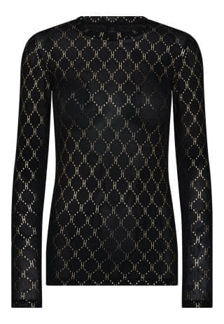 Hype The Detail Mesh Bluse Sort M. Guld Logo