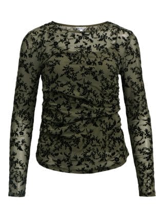 Hype The Detail Mesh Bluse Sort M. Beige Tekst